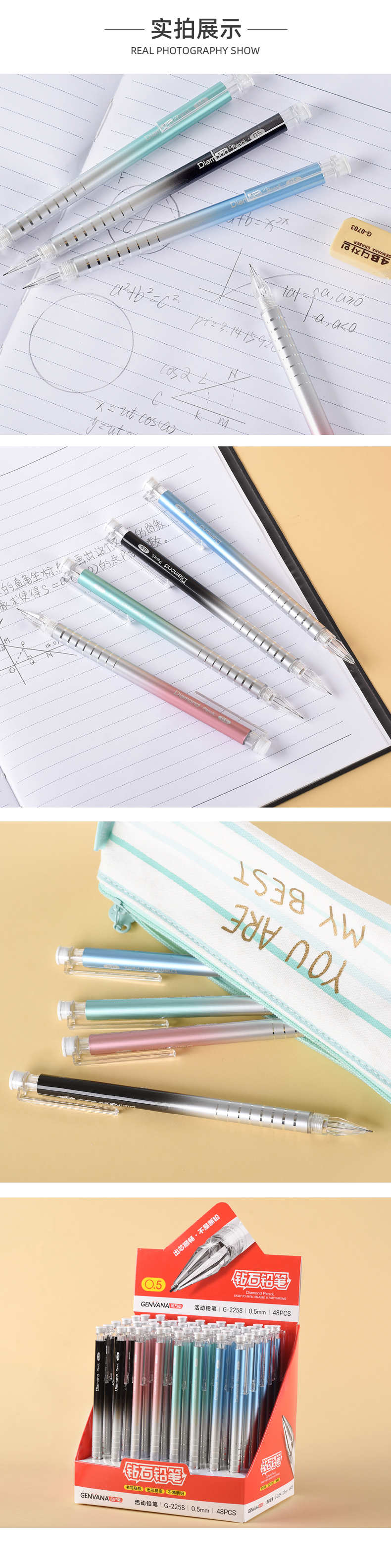 钻石头金属渐变风0.5mmHB自动铅笔